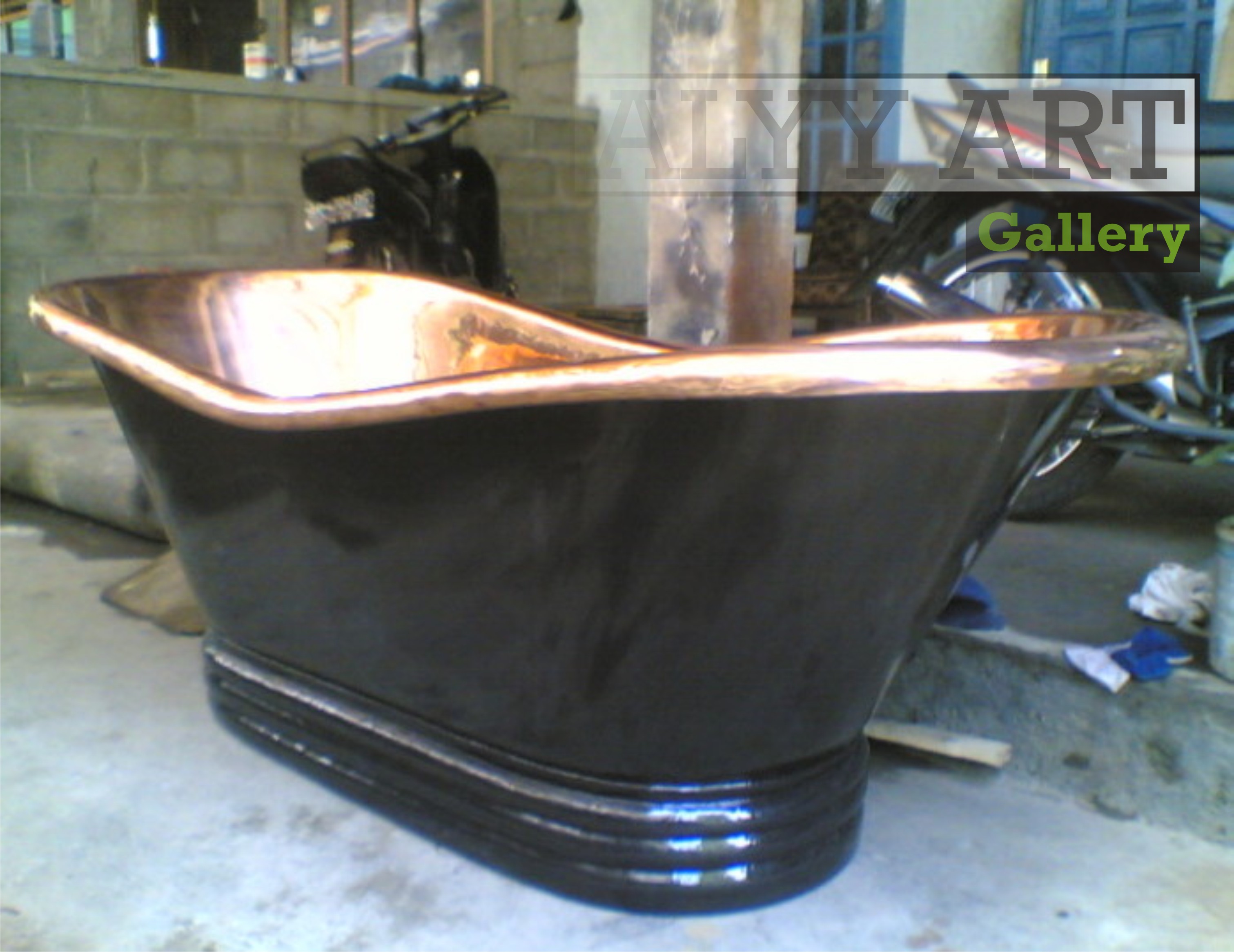 kini inovasi terbaru dari Alyy Art Gallery yang menciptakan sebuah kerajinan bak mandi terbuat dari bahan logam tembaga yang sangat terkesan mewah dan bersaing dengan bak mandi pada umumnya,sangat menarik jika terdapat di kamar mandi anda,
